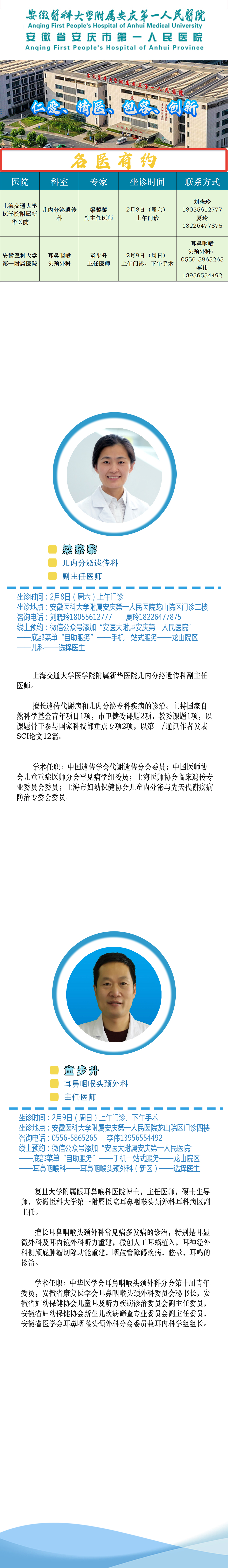 【名医有约】安医大附属安庆第一人民医院专家诊讯