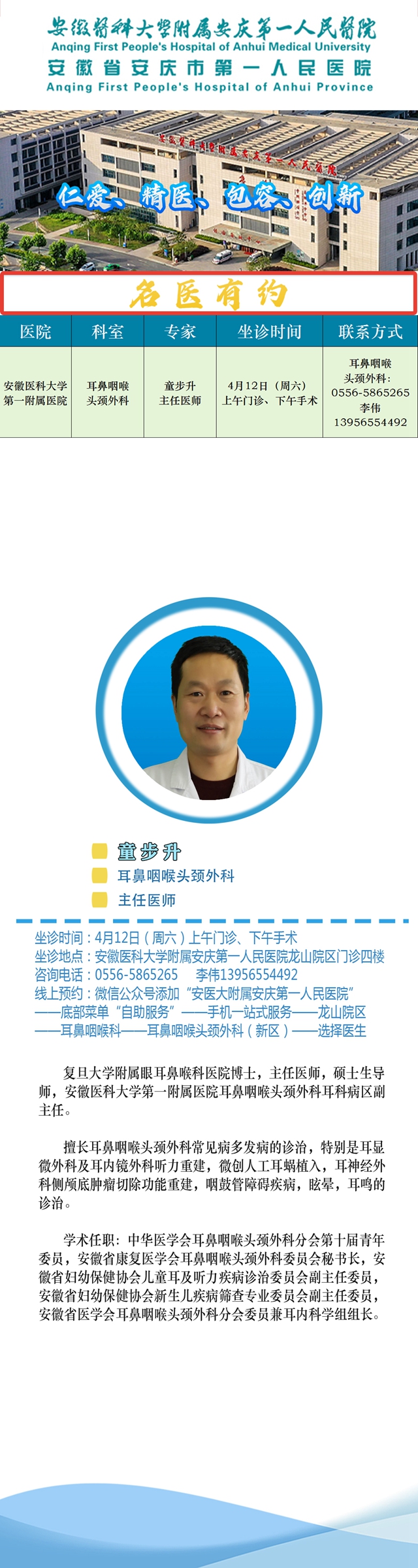 【名医有约】安医大附属安庆第一人民医院专家诊讯