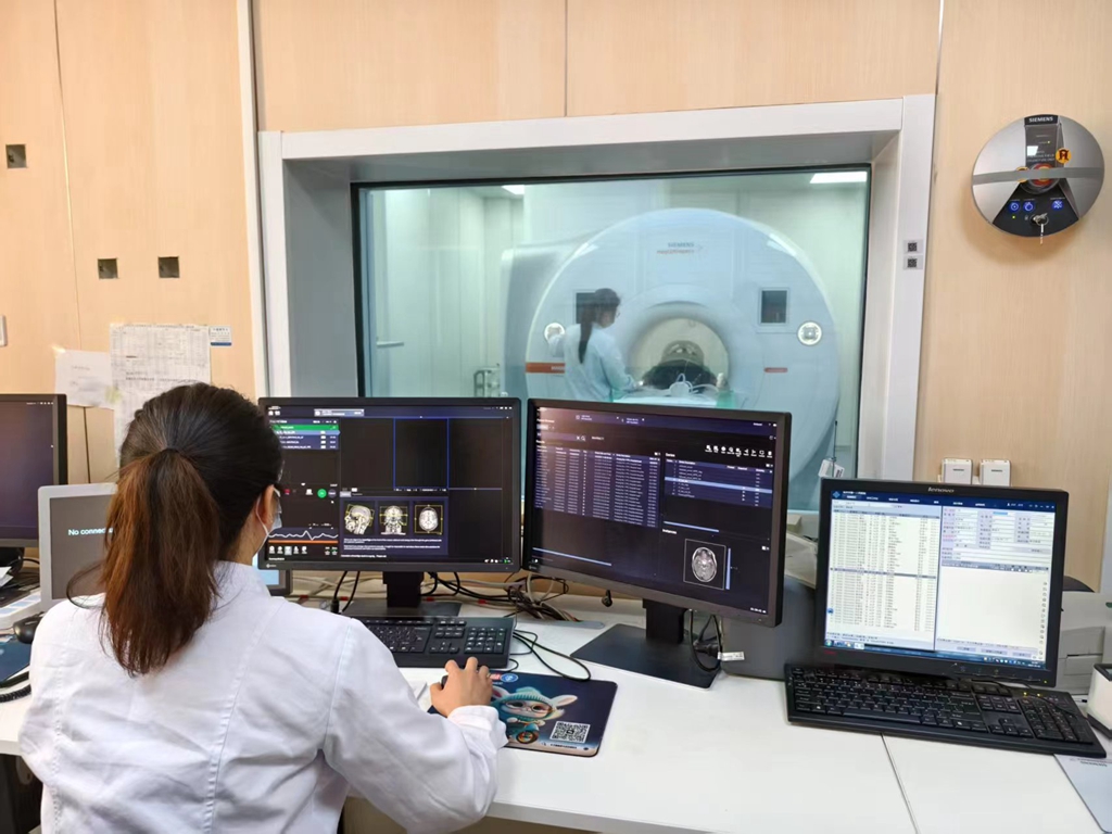 磁共振检查室,为了让一位患有幽闭恐惧症的患者顺利完成检查,何医生主动陪伴在患者身边,轻声与他聊天,缓解其紧张情绪。当患者因害怕想要中途放弃时,当值的李医生不断鼓励:“别担心,有我在,我们慢慢来。”经过近半小时的努力,终于成功完成检查,李医生顾不上擦拭额头的汗水,又急忙赶去查看下一位患者。