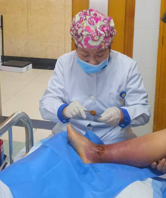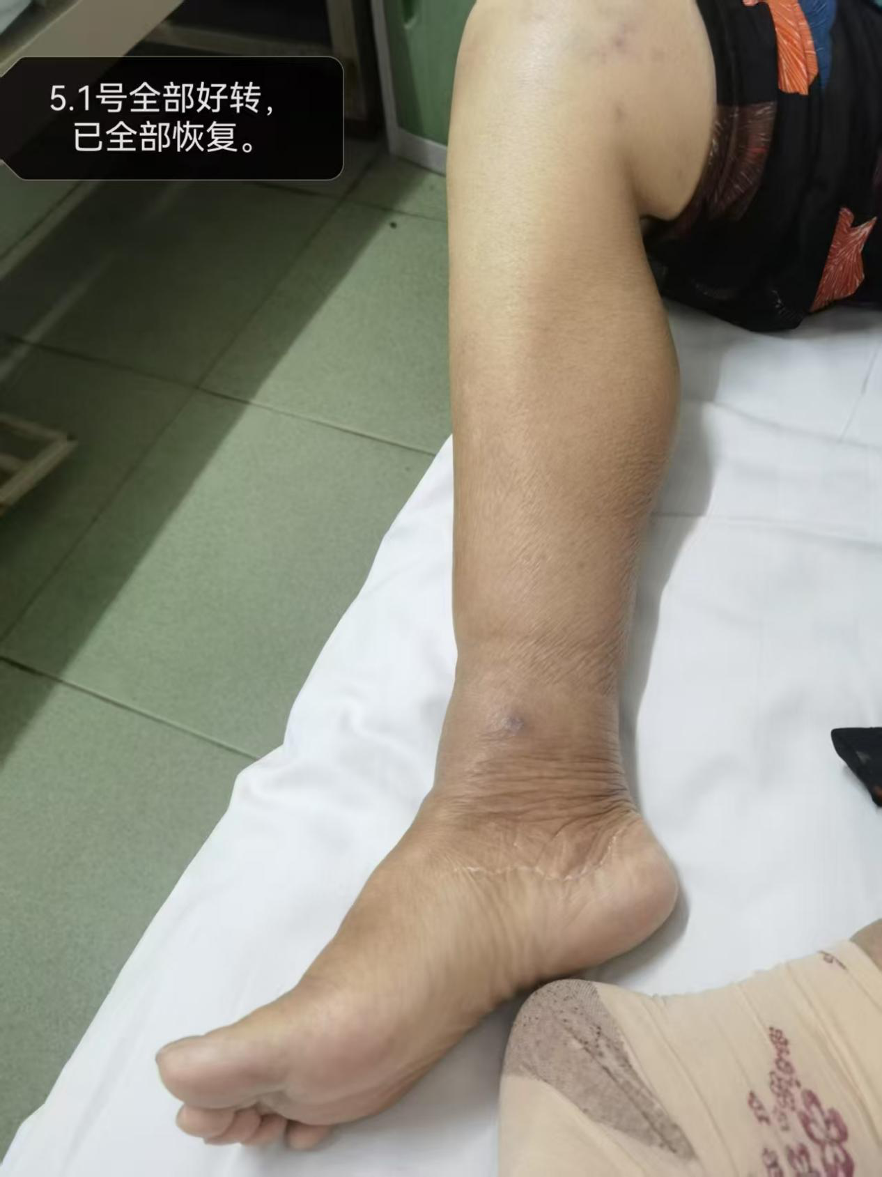 该患者为糖尿病肾病、尿毒症长期透析患者,基础病情危重,因重度血小板减少(血小板计数19×10⁹/L)入院,存在极高出血风险。此次因右下肢膝盖以下高度浮肿伴红肿热痛,脚踝处有溃烂局部有渗液,炎症指标显著升高,病情一度危急。患者免疫机能低下、凝血功能异常,血糖控制不佳,加之透析治疗的特殊性,使得感染控制与创面护理难度倍增。