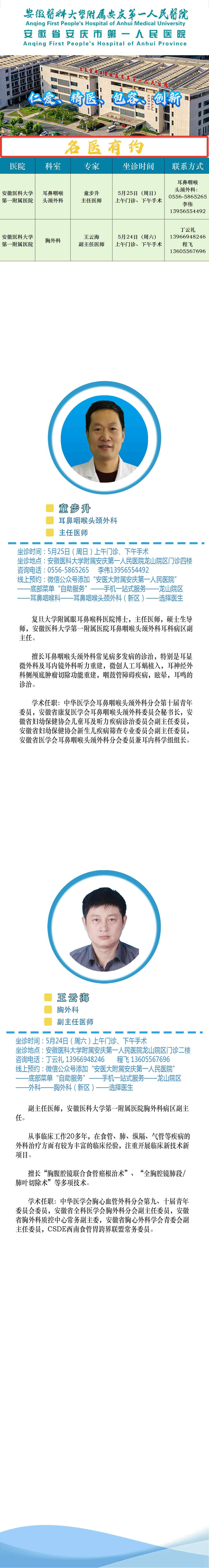 【名医有约】安医大附属安庆第一人民医院专家诊讯