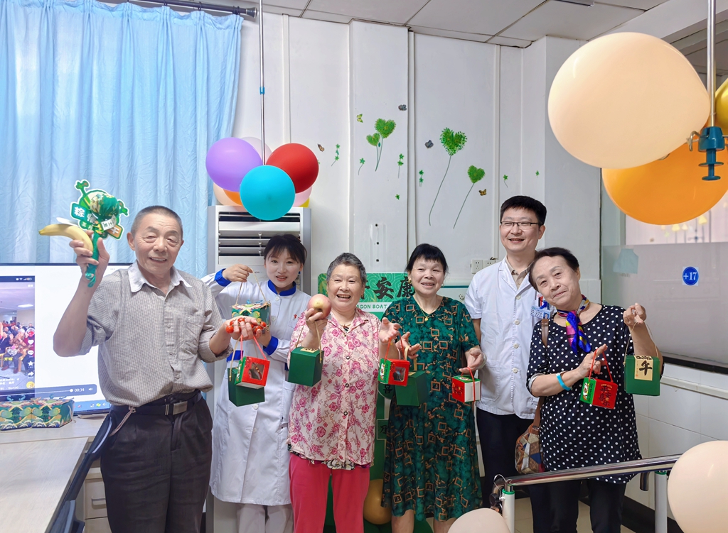 粽叶飘香时,温情满病房。5月30日,在端午佳节来临之际,安医大附属安庆第一人民医院老年医学科精心策划了一场以“情系端午 健康相伴”为主题的暖心活动,将传统节日的欢乐与老年健康宣教相结合,为住院患者送去节日的问候与贴心的关怀。活动现场欢声笑语,温情涌动,患者们纷纷竖起大拇指:“这样的活动,暖心又实用!”