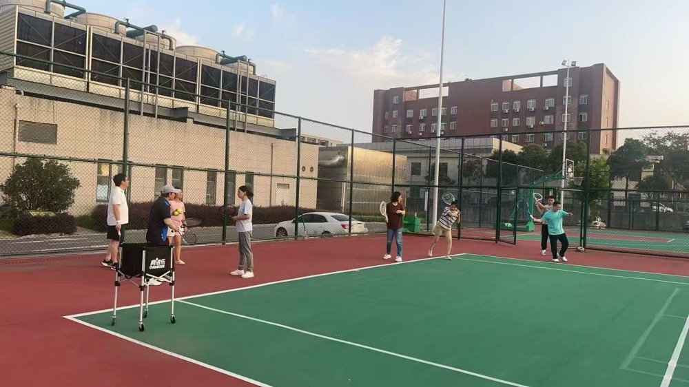 会员们兴趣浓厚,热情高涨,反响热烈,普遍叫好。为更进一步改善硬件设施,协会还于近期专门更换了新网。会员们也十分珍惜医院所创造的运动平台,利用业余时间,积极主动参加网球培训。下班后的网球场上,经常可以看到会员们认真训练的身影。医院网球协会会员涵盖了从70后到90后的各个年龄段的医院职工,在球场上,来自临床、医技、行政的30+、40+、50+会员职工们聚集在一起,共同投身于所热爱的网球运动当中,在运动中寻找健康与快乐,在运动中寻求团结与协作,也在运动中释放压力,提振精神。这其中,有一对夫妻搭档格外引人注目,他们就是神经外科主任倪永丰和他的爱人李荷鲜,他们俩同在医院工作,一个在临床一线,一个在行政部门,对网球共同的热爱,让他们坚持每天下午下班后都留在网球场上认真练习,还自己购买了拾球机和装球筐。倪永丰所在的神经外科工作量大,经常要连台做手术,他说以前工作忙,从不运动,自从参加网球协会后,他渐渐爱上了网球,体重降了不少,工作起来精力体力也更充沛了。同样积极投身网球协会活动的会员还有很多,无论是来自临床还是行政科室,大家都有一个共同的目标,就是利用业余时间把网球练好,锻炼身心,以良好的精神状态更好地投入工作,拥抱生活。