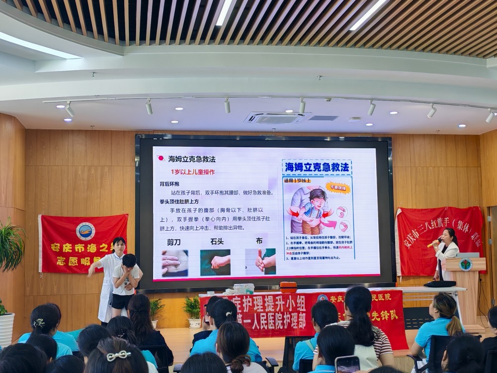 7月2日,应安庆市三八红旗手(集体)联盟之邀,安医大附属安庆第一人民医院危重症提升护理小组联合海之星志愿服务队,走进墨幼集团滨江校区,为园内200余名老师展开一场儿童意外伤害急救培训。