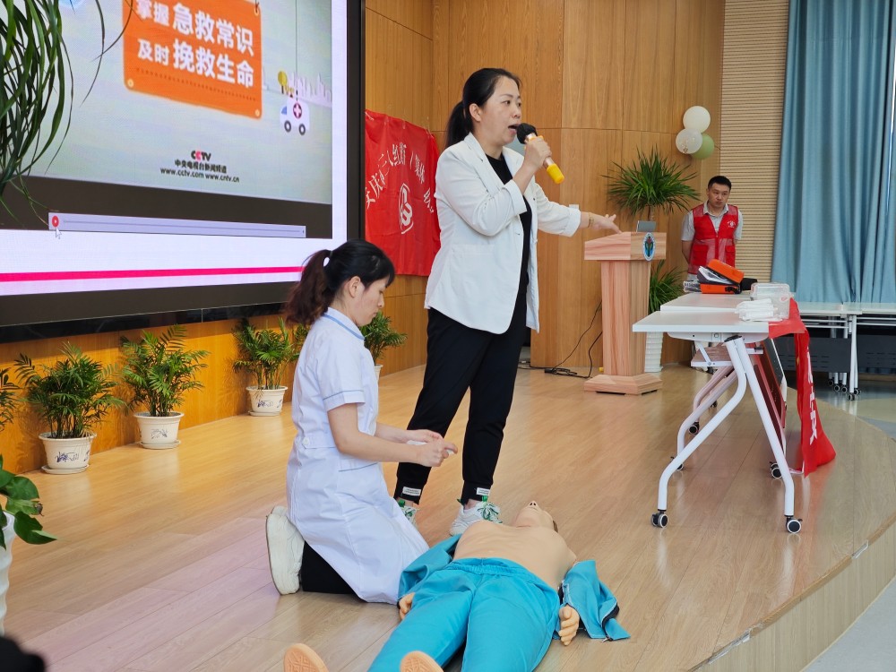 实操环节,为使知识“听得懂、用得上”,现场特设高仿真模拟演练环节,护理团队的九名成员分组对老师们进行悉心指导。张敏、何菊林、刘丽洁专注于海姆立克急救法的实操教学。她们精准演示,耐心纠正老师们的每一个动作,确保大家能熟练掌握这一应对异物卡喉的“救命绝技”。其余六位成员则针对心肺复苏培训,从快速判断意识、紧急呼叫急救,到规范进行胸外按压、开放气道、人工呼吸等一系列操作,都进行了细致入微的示范与指导。