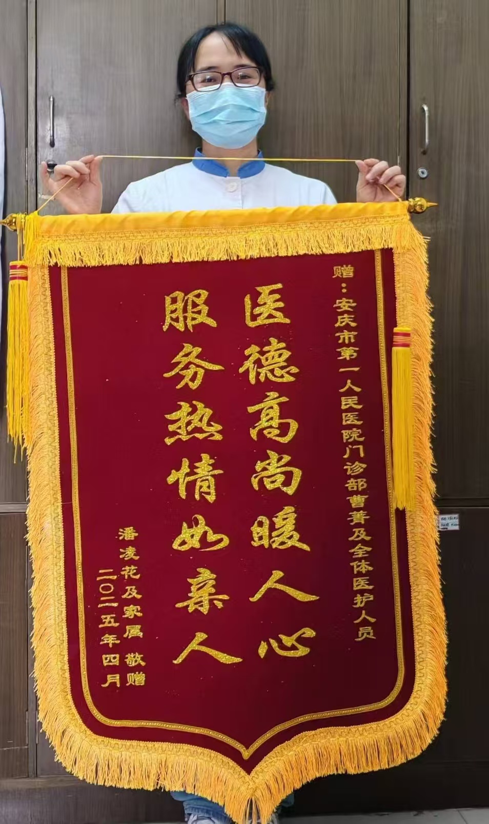 初夏的上午,在家不慎摔倒的潘奶奶颤巍巍走到孝肃路门诊大厅门口时,门诊部曹菁护士长和郑英护士就发现了她,随后迅速推来轮椅,为其挂号、陪同就诊、办理住院手续,陪老人做好检查入住神经内科后,曹菁不仅和病区交代老人门诊就医相关情况,还贴心地送去水杯、抽纸等日用品。当老人的子女从外地赶回来时,非常感动,郑重地送来一副锦旗以表谢意。