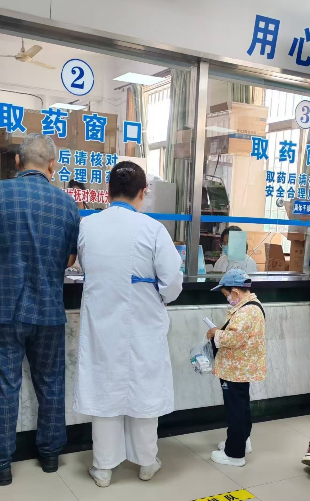 导医张红在窗口给高龄老爷爷缴费时,感觉有人在拉扯她的工作服,低头一看,发现是位身高不足一米的特殊老人。她说她今年75岁了,想挂号看看心内科,之前心脏曾经做过支架手术,由于身高原因,窗口内收费人员根本看不到她,就在她和张红交谈时,汪玉珍和李小红护士来到患者身边,接下帮助老人的任务,不仅帮助她在自助机是挂号、还指引她到诊室就诊,并为其取药、目送她离开医院。