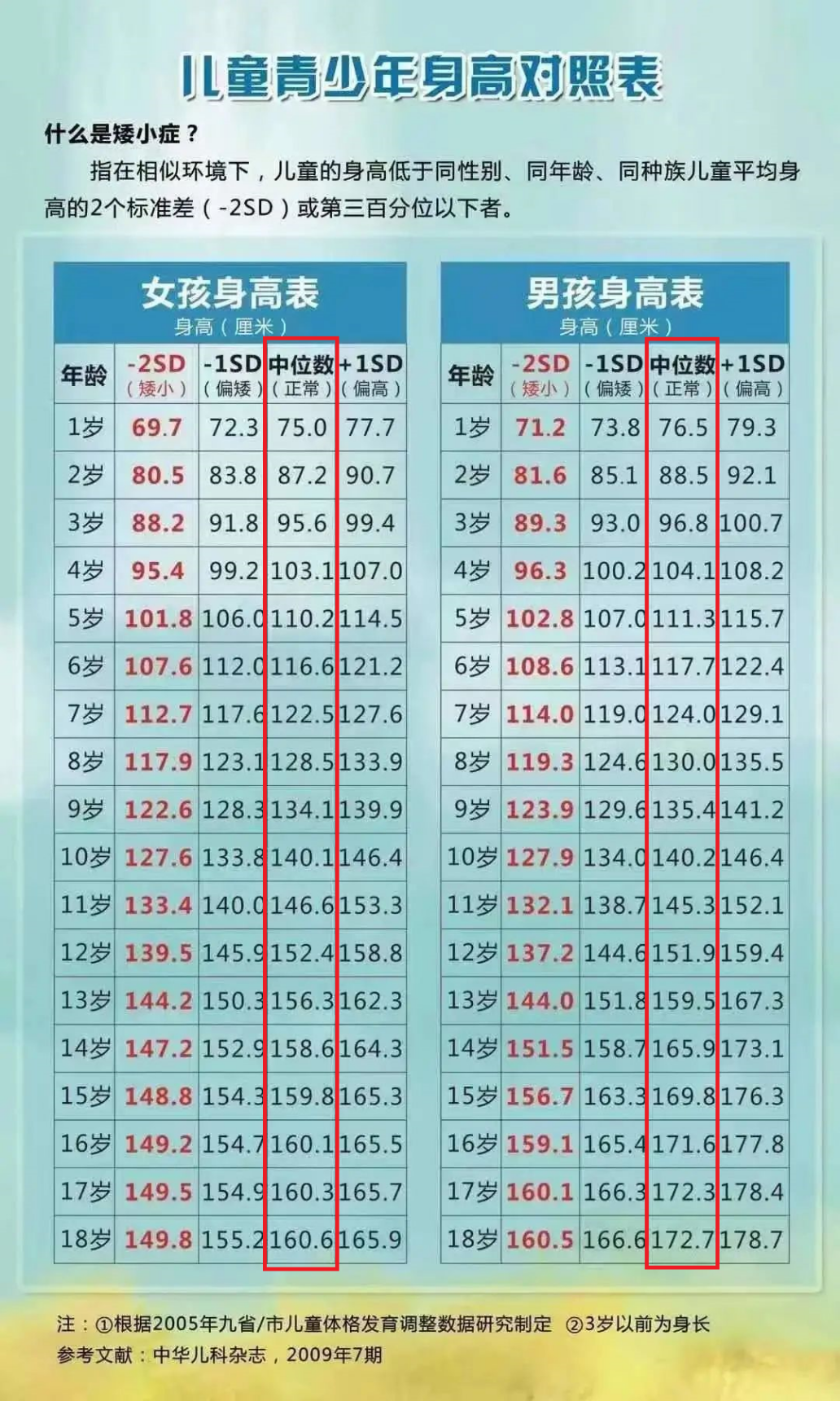 孩子在各个年龄阶段的标准身高是多少呢?我们看这张图~