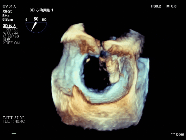 经过医院心血管内科团队术前充分评估,患者存在P3脱垂累及交界、脱垂宽度大且瓣口面积大等复杂情况;而DragonFly™实施TEER术式展现出显著优势:仅通过9毫米的股静脉微小穿刺点即可完成治疗,无需开胸的微创特性大幅降低术中风险,同时为患者预后奠定了良好基础。征求患者及家属同意并完善术前检查和准备,决定为患者施行经导管二尖瓣缘对缘修复手术,即经导管二尖瓣钳夹成形术(TEEP)。