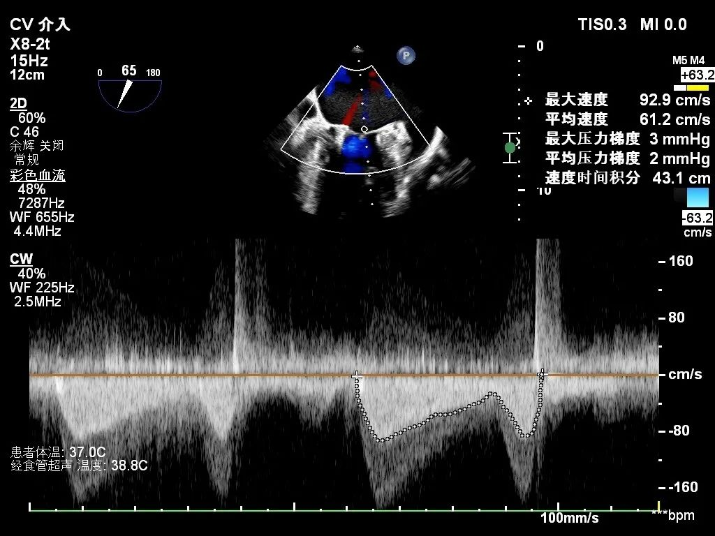 针对该患者3区瓣下腱索较多,且有断裂腱索收缩期甩向左房侧,容易发生腱索缠绕等手术难点,彭杰成主任团队与徐健主任团队在麻醉和超声团队紧密配合下,先于3区靠内交界置入一枚短宽(SW0609)夹,解决内交界脱垂,然后并排于3区植入第二枚长宽(XW0612)夹解决残余脱垂病变。为平衡瓣叶张力,选择打开瓣膜夹20°进行释放,释放后无残余脱垂,二尖瓣反流降至微量,肺静脉逆流消失,效果显著。整个手术过程历时2小时左右,术后第二日解除股静脉绷带,患者下床活动自如,心功能明显改善。