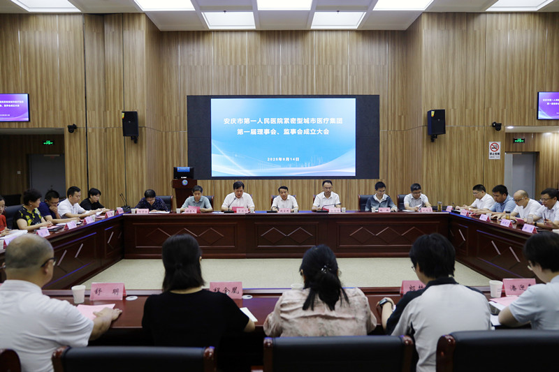 为深入贯彻落实国家医药卫生体制改革要求,优化区域医疗资源配置,提升城市医疗服务体系整体效能,更好满足人民群众日益增长的健康需求,8月14日,安医大附属安庆第一人民医院紧密型城市医疗集团第一届理事会、监事会成立大会暨第一次会议圆满召开。安庆市人民政府副市长李岩,宜秀区委书记郑志,市卫健委党组书记、主任张贤惜出席并讲话,医院党委书记赵家彬致辞,党委委员、副院长毕满华主持。