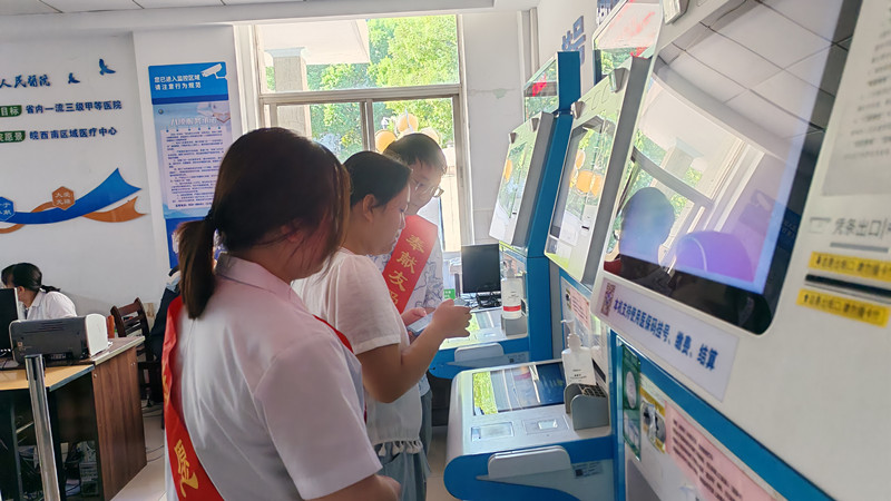 在孝肃路院区门诊一楼大厅,围起的屏障隔开了施工场地和临时挂号收费处、自助缴费设备,但隔不开的是在岗医务人员及志愿者的服务热情。孝肃路院区位于老城区市中心,门诊挂号量较大,其中,老年患者较多。施工期间,门诊就诊环境不可避免的会有所变化,也给患者带来了诸多不便。在及时制作并张贴醒目的标识标牌前提下,医务人员克服困难,每一位志愿者均能迅速融入环境,在挂号、前往诊室途中、缴费、取药、检查检验等环节都能看到志愿者的身影。他们分布在不同的楼层,面对前来就医的门诊患者,从及时伸手搀扶一把、热心指引就诊地点,到陪同检查、缴费、取药,解答咨询时的和颜悦色、不厌其烦,志愿者每一个细小的动作都不乏温度、饱含真情,更富有责任心。上楼时,一句“小心点”,挂号缴费后“您把身份证、社保卡收好哦!”一句句温馨的提示如一缕缕春风拂过耳畔,医患和谐的画面格外温馨。