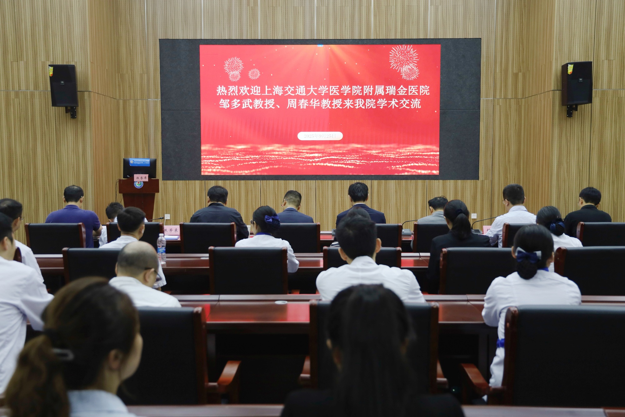 9月25日,上海交通大学医学院附属瑞金医院教授邹多武、周春华一行应邀来安徽医科大学附属安庆第一人民医院进行学术交流。院党委书记赵家彬,党委委员、副院长毕满华及相关职能科室负责人陪同并座谈。