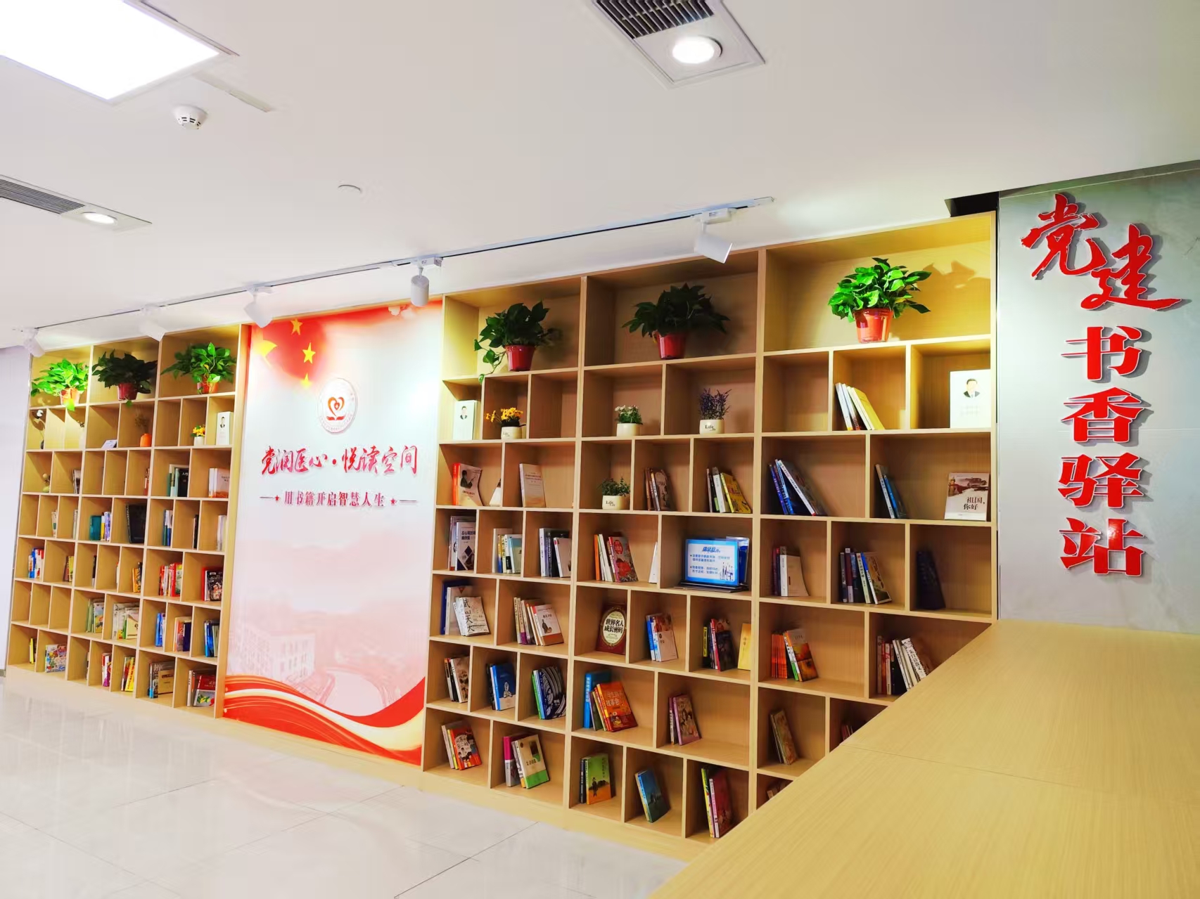 驿站坐落于医院龙山院区门诊二楼候诊区,筹建初期便得到医院各党支部和广大干群的积极响应,大家踊跃捐赠精心挑选的闲置书籍书刊,累计超过500册,共同构筑充满书香的心灵驿站。如今,这片经过精心布置的温馨空间,已成为缓解患者候诊焦虑、提升就医体验的“暖心港”,也是职工舒缓压力的“充电站”,用书香传递着医院的关怀与温度。