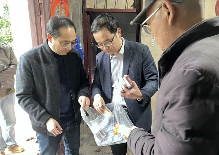 义诊结束后,心内科党支部党员医护团队与鲍冲湖村医汪医生进行座谈交流,详细了解乡村医生在城市紧密医联体合作下提升基层医疗服务能力的具体需求,收集居民对心血管慢性病管理和居家医疗服务等方面的医疗需求,并就双向转诊、专家下基层、定期巡诊和培训以及优化急诊胸痛患者转诊流程等问题交换意见。随后,党员医护团队开展上门服务,回访出院患者,仔细查看康复情况,更新诊疗建议,叮嘱后续康复要点,并走进鲍冲湖村、鹿山村2户困难居民家中,为行动不便的老人上门查体,送去慰问品,结合老人过往病情做一对一用药指导,反复叮嘱用药细节和生活照料注意事项,留下联系电话方便后续随时咨询。