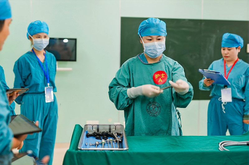 本次竞赛聚焦手术室理论考核和腔镜临床实操核心能力两大模块,涵盖操作精准度、流程规范性和应急处置效率等多个考核维度,汇聚全省33家医疗机构的顶尖团队同台竞技,竞争空前激烈。备赛期间,医院护理部高度重视,依托院内完善的技能培训体系,反复演练操作细节、通过理论复盘与实操演练持续精进技艺,力求每一环节精准无误、每一操作规范达标。