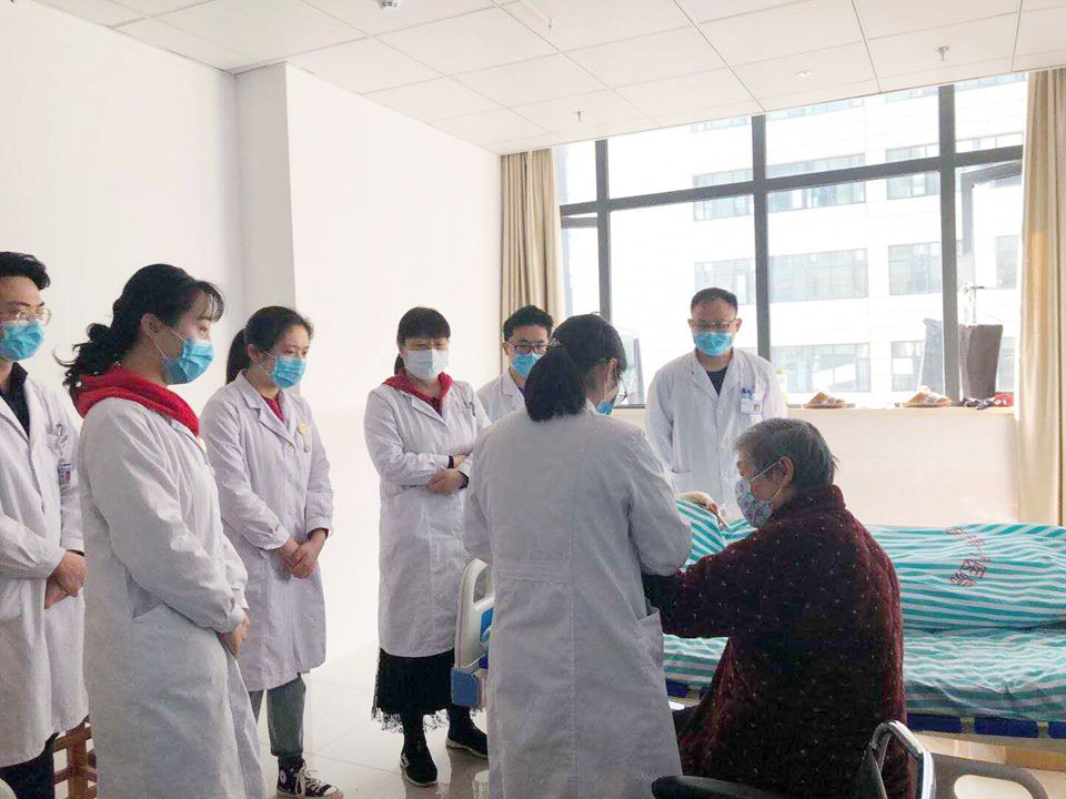 患者代某,女,68岁,是宜秀区大龙山镇居民。1月7日因急性脑梗塞入住安庆市一院龙山院区神经内科,时值龙山院区康复医学科开科之际,康复医学科还曾去神经内科对患者给予早期床旁康复治疗。1月24日农历大年三十当天,患者病情趋于稳定后转入龙山院区康复医学科,接受进一步康复治疗。由此,该科迎来了第一个脑卒中住院患者。
