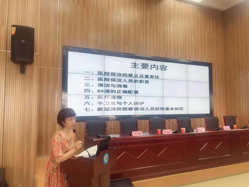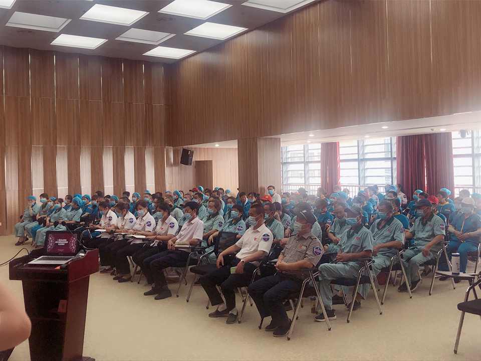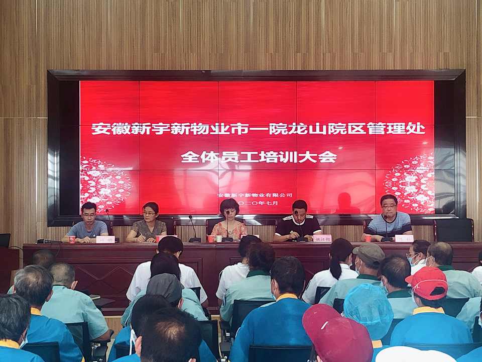 为加强医院感染管理,保证医疗安全,7月17日下午,安庆市一院总务科、保卫科、感染办与新宇新物业公司,在龙山院区行政楼4楼多功能报告厅联合举办龙山院区物业人员培训会。
