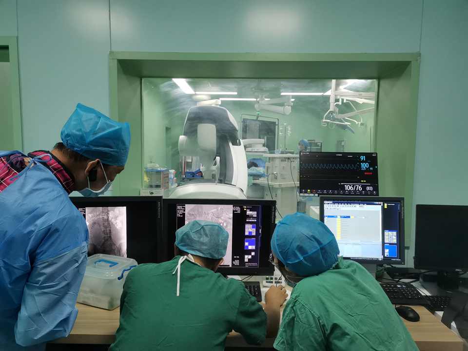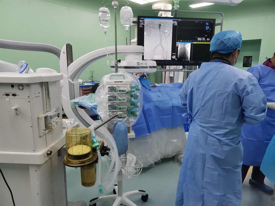患者45岁,孕期产检B超示胎盘完全覆盖宫颈内口,孕36周入院待产。对这位极高危孕妈,龙山妇产科联合介入科、新生儿科、麻醉科、输血科等多学科进行会诊,在术前进行了周密部署,拟定手术方案,结合之前救治凶险性前置胎盘的经验,决定再次利用我院复合手术室的优势,启用“飞龙”利器行“腹主动脉球囊预置术”后行“剖宫产术”。在向患者及家属详细交代病情及手术方式,以及可能出现的并发症,征得家属理解并同意后,手术开始了。