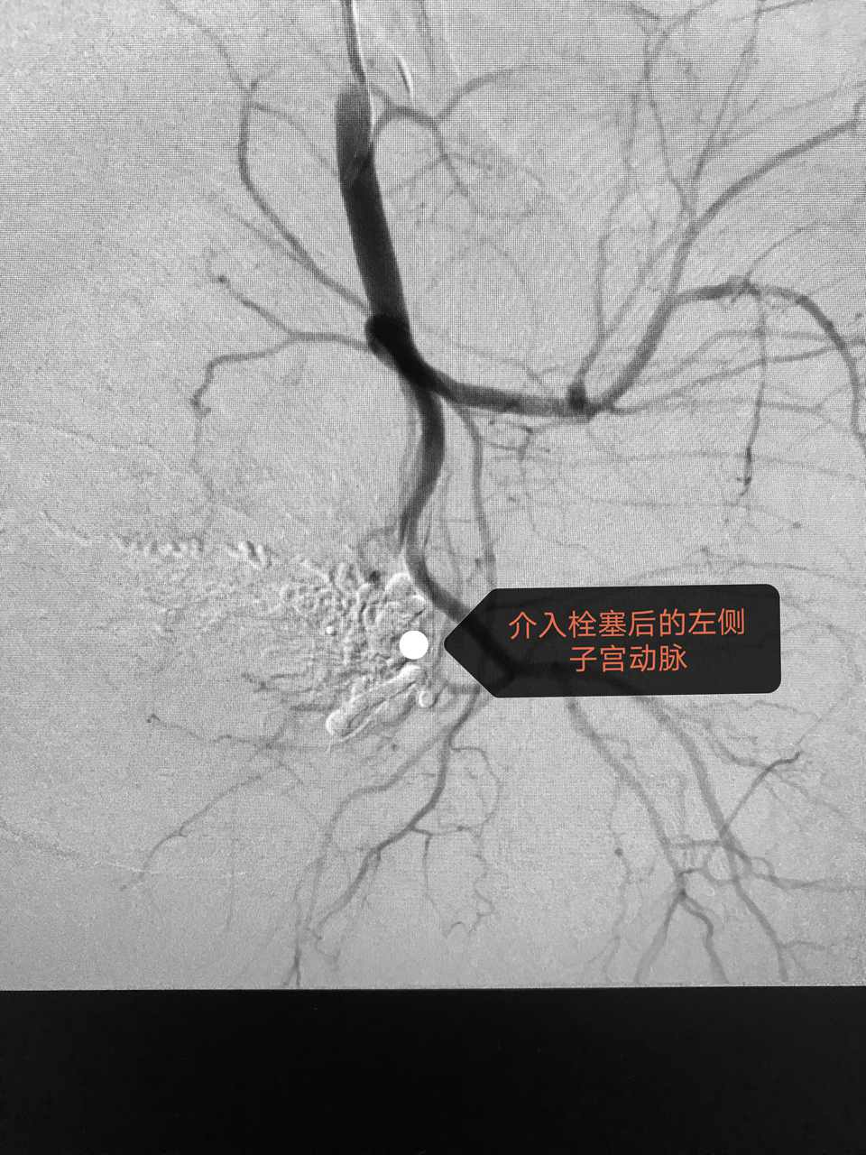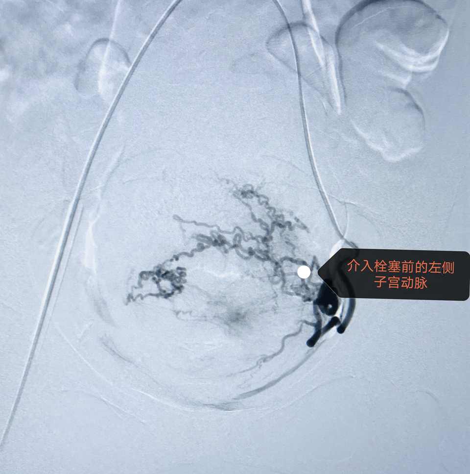 介入团队在局麻下行术前“腹主动脉球囊预置术”,球囊植入成功,产妇情况良好。随即在麻醉科配合下由产科手术团队行剖宫产术。当打开腹腔暴露子宫后,果断采用“阿氏”切口避开胎盘附着部位切开子宫,快速顺利取出胎儿。新生儿娩出后,探查宫腔证实胎盘覆盖整个子宫下段,为减少出血,介入团队及时充盈导管球囊、阻断流向宫体的血流。因胎盘粘连,快速徒手完整剥离。松开球囊,见胎盘创面渗血明显,且子宫收缩欠佳(按摩、强力宫缩剂已应用),子宫后壁广泛水泡状增生(内异症),为减少产后出血,迅速缝合子宫,遂行子宫动脉栓塞术。手术成功结束,术中出血量约500ml,跟一般剖宫产出血差不多,避免了输血及输血并发症的发生。术后母子情况恢复良好。