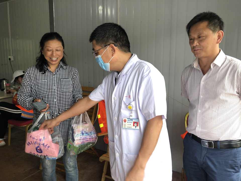 7月24日上午,安庆市第一人民医院新河街道社区卫生服务中心防汛医疗小分队一行4人,在护士长王俊带领下,携带精心准备的清凉油、人丹、十滴水、风油精、创可贴、毛巾等防蚊叮虫咬和防暑物品以及抗洪防病宣传资料,来到长江广济圩大堤新河街道防守段巡诊慰问。