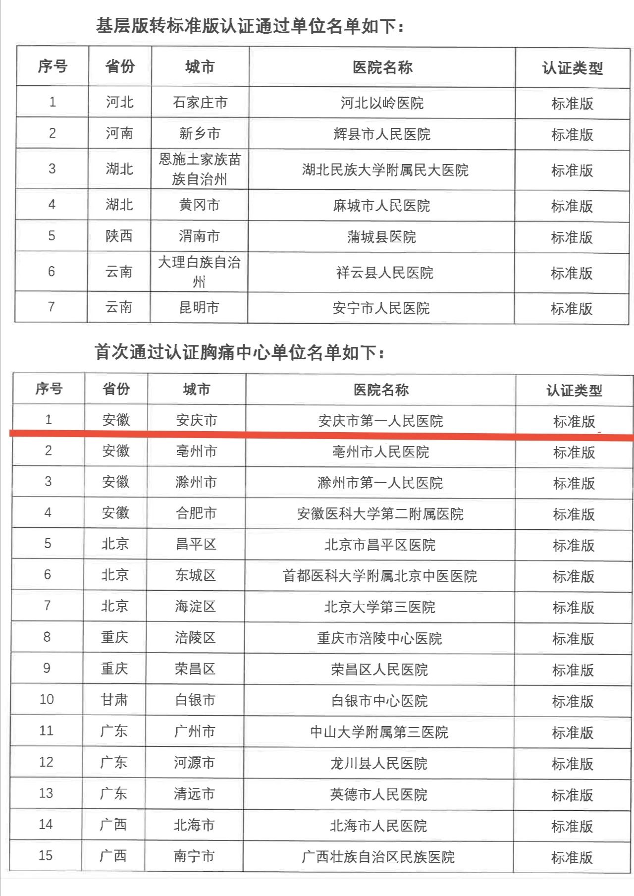 重磅!安庆首家!!安庆市第一人民医院通过中国胸痛中心(标准版)认证