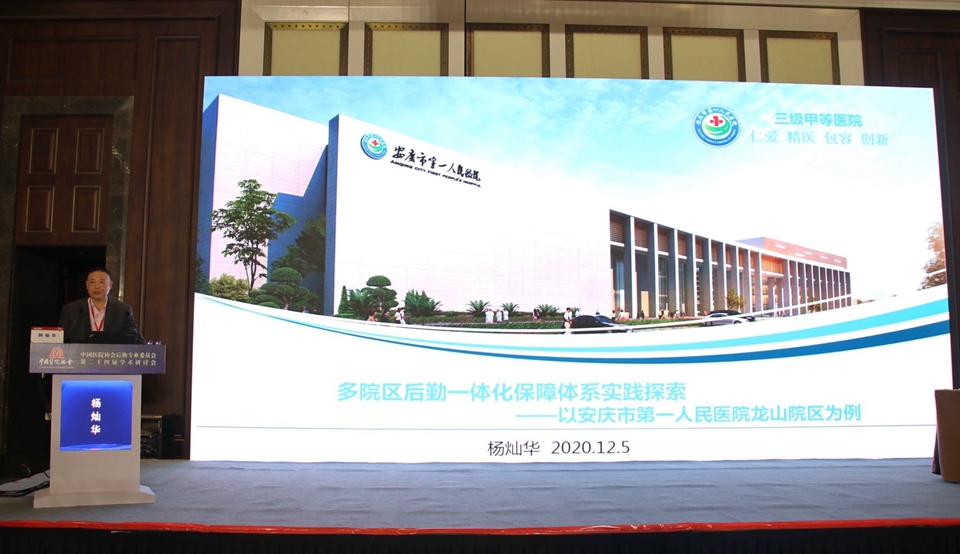 杨灿华副院长以《多院区后勤一体化保障体系实践探索——以安庆市第一人民医院龙山院区为例》为题进行大会交流发言。