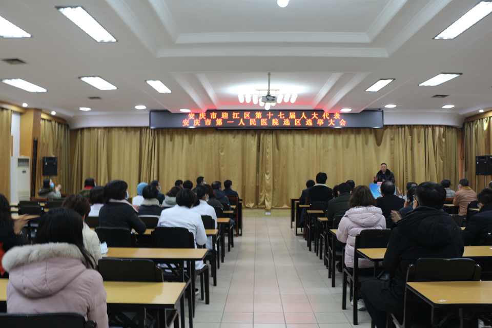 12月18日,迎江区第十七届人大代表安庆市第一人民医院选区选举大会在市一院老院区举行,迎江区人大及孝肃路街道领导到会指导。选举大会由党委委员、副院长杨灿华主持。