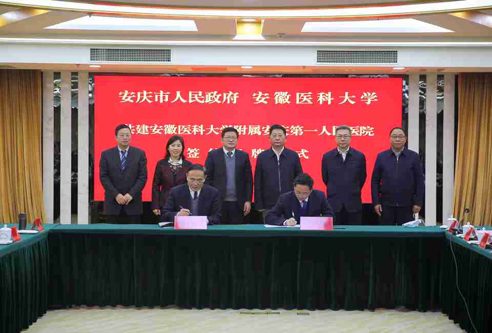 会上,副市长郭家满与安徽医科大学副校长余永强代表双方签署协议。根据协议,双方将以现有的安庆市第一人民医院为基础,通过市校民主协商、探索创新,建立直属附属医院管理模式,共建安徽医科大学附属安庆第一人民医院,打造皖西南区域医疗中心。(安庆市新闻传媒中心记者 江月/文 路欣/图)