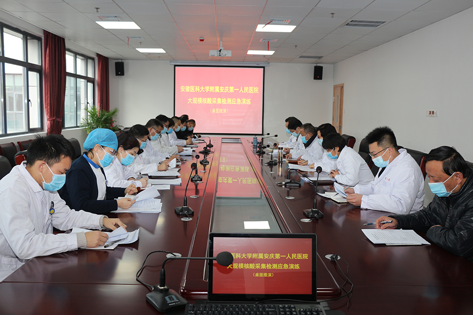 为有效应对新冠肺炎疫情,做好医院疫情防控应急准备工作,完善新冠肺炎疫情大规模人群核酸检测的组织、协调、沟通等处置能力,近日安徽医科大学附属安庆第一人民医院开展大规模核酸检测桌面推演。院党委书记鲍习化,副院长沈振、鲁梅丽、毕满华及相关科室人员参加。
