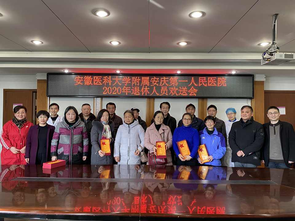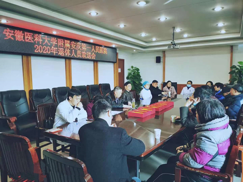 2月2日下午,安徽医科大学附属安庆第一人民医院召开2020年度退休职工欢送会,副院长杨灿华主持并讲话,副院长沈振及相关职能科室负责同志参加。