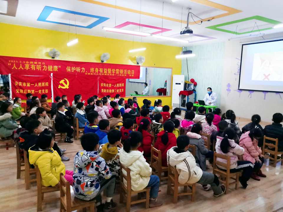 3月3日是全国爱耳日,恰逢学雷锋活动日临近,安医大附属安庆第一人民医院团委联合党政后勤第一、第二党支部志愿者走进大观区领智幼教华茂分园开展了学雷锋活动,向小朋友们宣传保护耳朵的知识,提高全民爱耳意识。