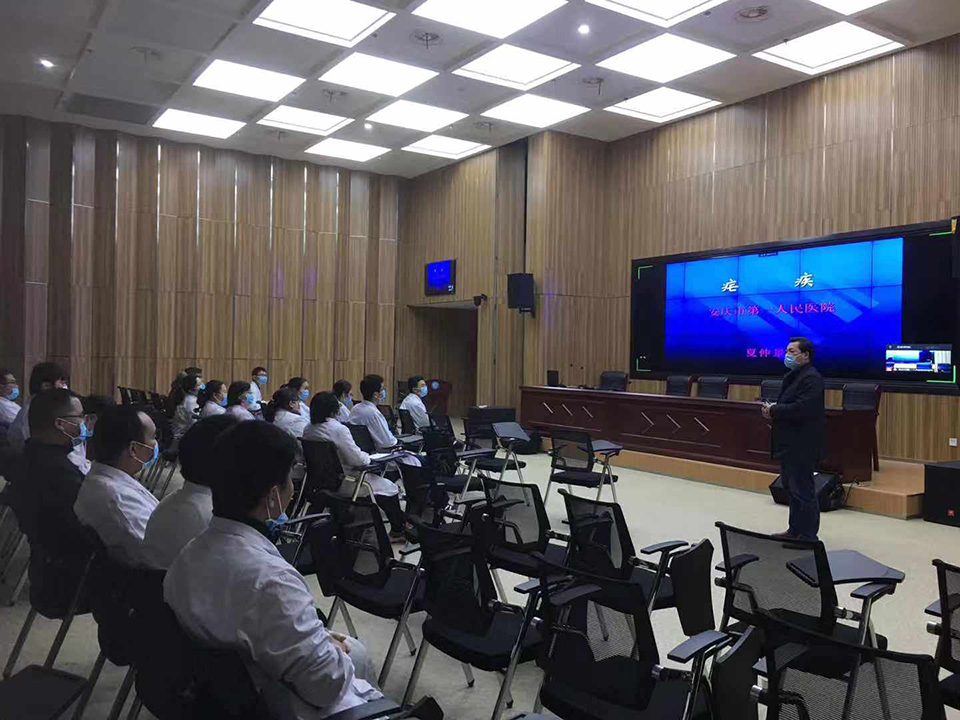 3月5日下午,由医务科、保健科组织开展了全院医师传染病知识培训,培训通过远程视频会议的方式在龙山院区多媒体会议室及孝肃路院区六楼大会议室同时进行,龙山院区、孝肃路院区及华中路院区医师参加。