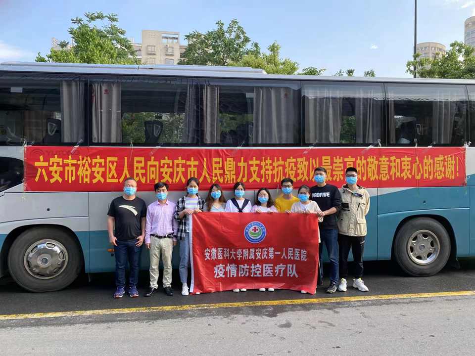 5月17日,根据安庆市卫健委统一部署,我院派出一支由12名医护人员组成的核酸采样队伍,奔赴六安支援疫情防控。5月20日,赴六安支援医疗队圆满完成任务,凯旋归来。