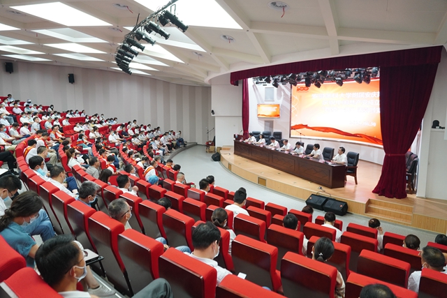 6月30日,安医大附属安庆第一人民医院召开庆祝中国共产党成立100周年“两优一先”表彰暨党课报告会。党委书记鲍习化作党课报告。党委副书记、院长王玉主持会议。院领导班子成员,受上级党委和院党委“两优一先”表彰的优秀个人和先进集体,院党史知识竞赛等系列活动获奖者,党政后勤职能科室和临床医技科室主要负责人,在职党员及离退休党员代表参加会议。