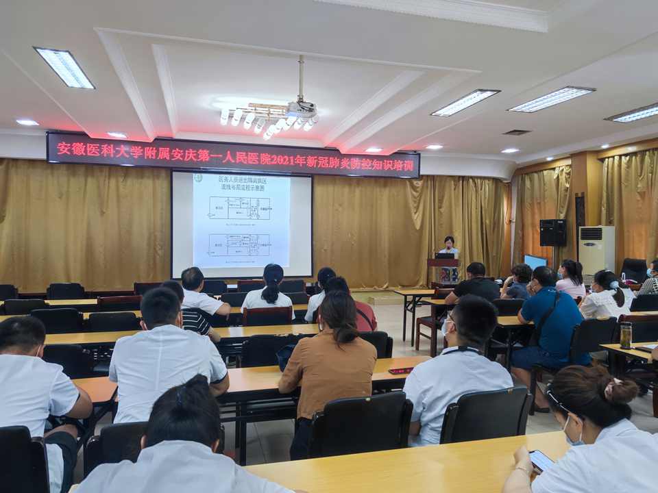 为进一步加强常态化疫情防控中医务人员的防控措施落实情况,提高医务人员防控意识,7月8—9日,安医大附属安庆一院召开《常态化疫情防控存在问题及对策》培训会议,副院长沈振、毕满华出席。在医务科和医疗保障部共同组织下,感染管理科对龙山院区、孝肃路院区及华中路院区发热门诊(哨点诊室)、预检分诊及咽拭子采集点所有值班人员进行常态化疫情防控知识再培训和考核。