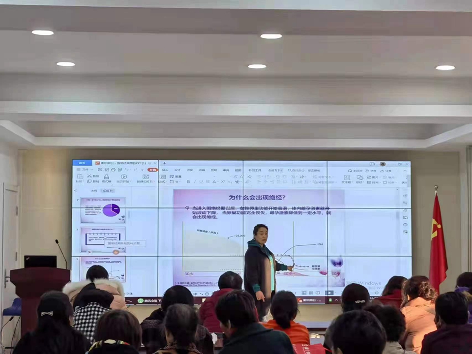 妇产科专家马丽主任现场讲解了围绝经期保健、治疗的重要性和必要性,造成围绝经期困扰的原因,以及如何更好应对更年期的各种不适,提高其生活质量。她根据多年丰富的诊疗经验,与社区群众互动分享,答疑解惑。肖强副主任医师向参会妇女讲授了围绝经期妇女生理、心理变化及围绝经期综合症等方面的知识。整个讲座内容丰富,通俗易懂,在座女性朋友们受益匪浅。