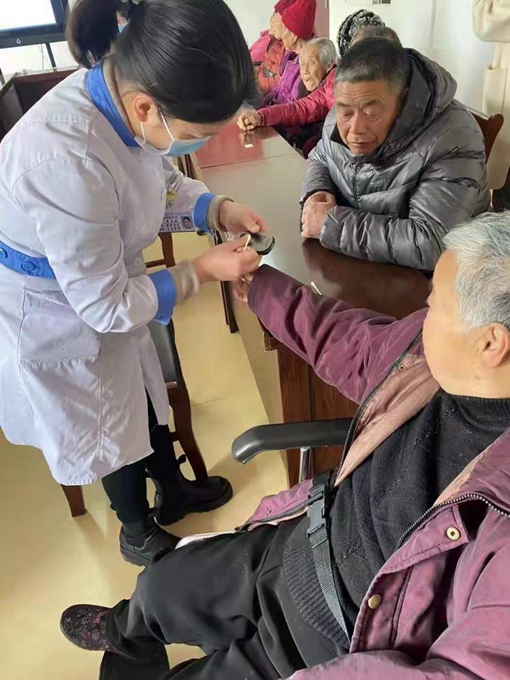 义诊活动现场,医务人员为敬老院老人们测量血糖、血压和心率,咨询身体健康状况及平时用药情况,给老人们调整用药和健康宣教。并对行动不便的卧床老人进行身体检查及健康咨询。邵平主任和蒋丹丹护士长分别做了了“脑卒中健康教育”“预防跌倒”讲座。邵平对老年人多发的脑卒中问题进行详细的讲解,并指导敬老院工作人员如何急救处理及科学安排膳食营养,嘱咐老人们按时用药,以控制基础疾病。蒋丹丹特别针老年人跌倒摔伤进行宣教,向敬老院护理人员传授护理经验,以及如何教会老年人学会预防跌倒,大大提高了工作人员及老年人自身的防范意识。