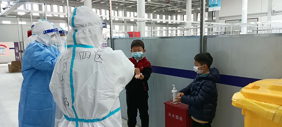 瞧,我正指导舱里的小朋友"七步洗手法”呢,小朋友学的可认真了。方舱里面边治疗边学习的孩子,他们的自律和坚持,着实让人感动。