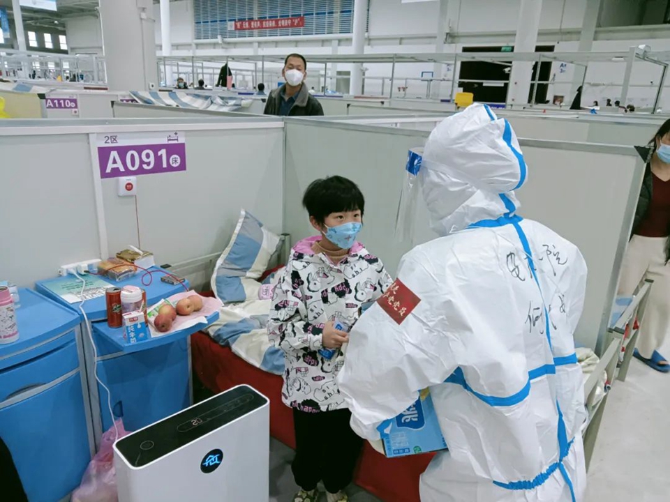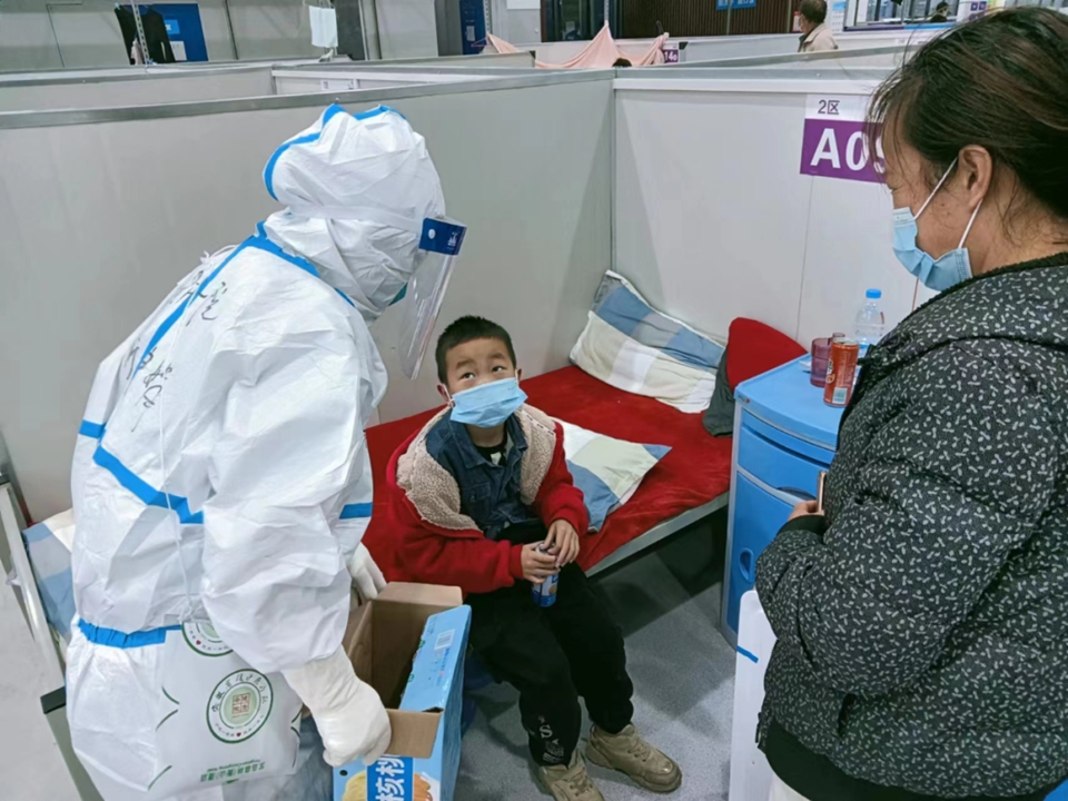 就这样,我们收集了孩子们的小小心愿,苹果、橙子、酸奶、糖果……大家纷纷将自己的零食“贡献”出来,带到舱里一一分发给小朋友们。在孩子们“谢谢大白”“谢谢姐姐”的童声中,我也倍感欣慰,那一刻,我想到了自己的女儿。防护服是冰冷的,但我们是有温度的。