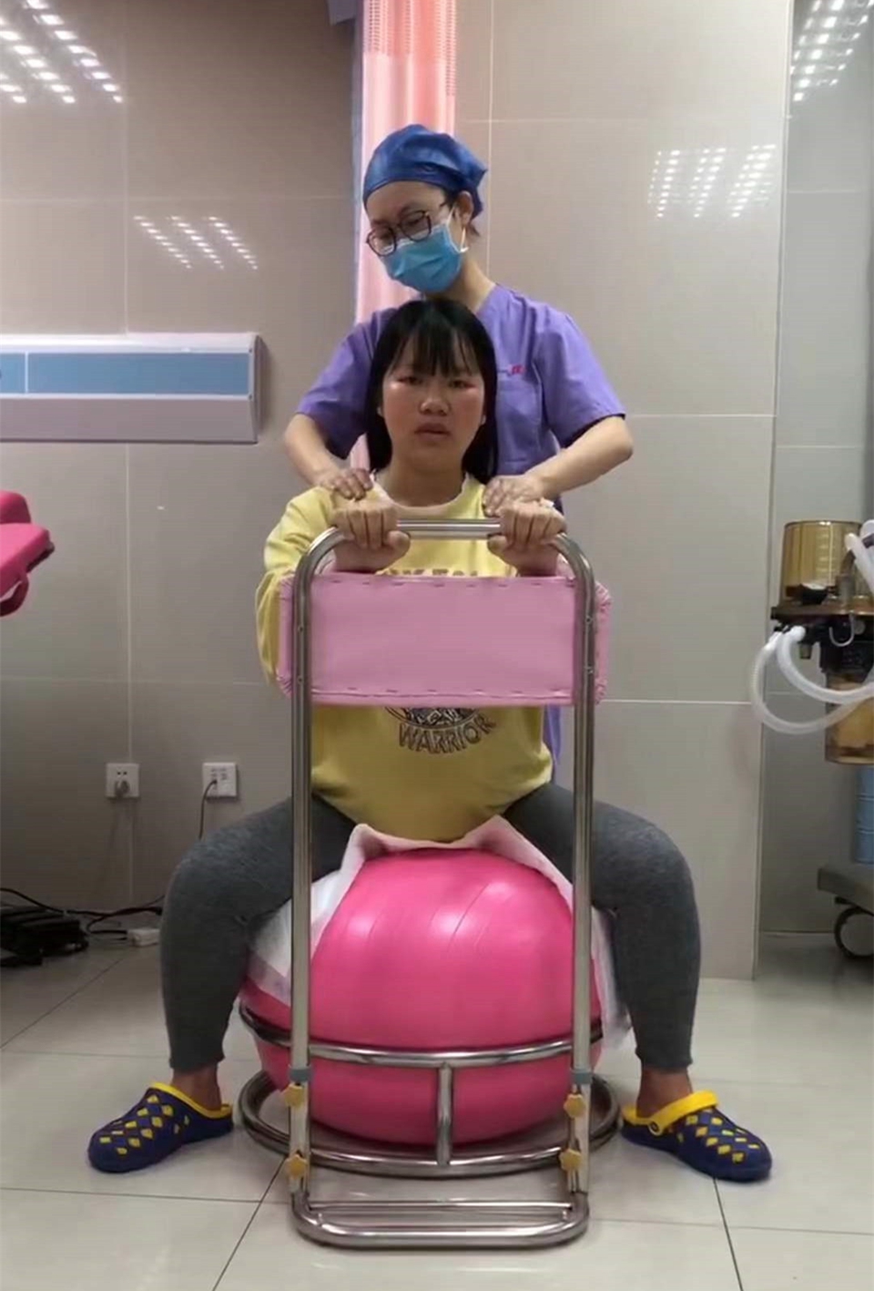 通过此项运动,可以改善产妇的呼吸和循环、协调骨盆底肌肉韧带,增加母体的柔韧性和力量,促进孕妇顺利自然分娩。环境的熟悉,助产士的解说,还有现场的运动指导,让孕妈妈们消除了对于分娩的恐惧。