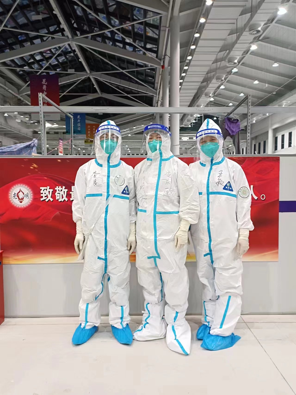 身处抗疫一线,虽然辛苦但是值得,尽管艰险但是我们无所畏惧,因为身后有国家、政府的关心支持,有院领导作我们最坚强的后盾。晚上下班回到酒店,爱人在视频通话里说道:“咱医院鲍书记今天来家里了,他关心科室,充分赞扬、肯定了你们科室的成绩.....你在那边工作一定做好防护,我在家等你回来!”来上海不知不觉已经43天了,在抗疫前线有全面而完备的后勤保障,让我们安心战“疫”,在大后方还有来自院领导对我们科室、我们援沪医疗队家属的关心关怀与亲切慰问,让我们倍感温暖与力量,我们一定扛得住、守得住,一定坚持到最后。