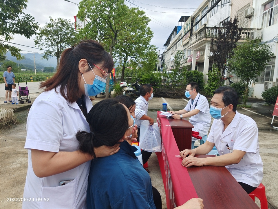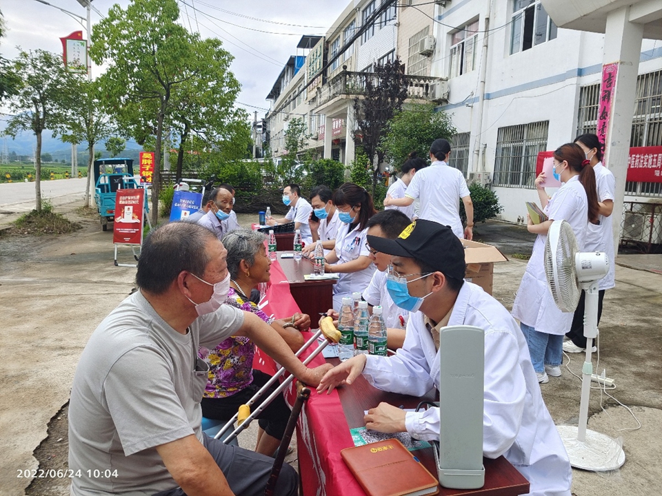 为深入贯彻落实党的十九大“坚持中西并重,传承发展中医药事业”重要部署,庆祝《中华人民共和国中医药法》正式实施五周年,6月24日,安医大附属安庆市第一人民医院中医及康复党支部,在中医科金诚久主任,龙山康复医学科王嫦娥主任的带领下,一行共14人冒雨赴宿松县隘口乡开展大型义诊活动。