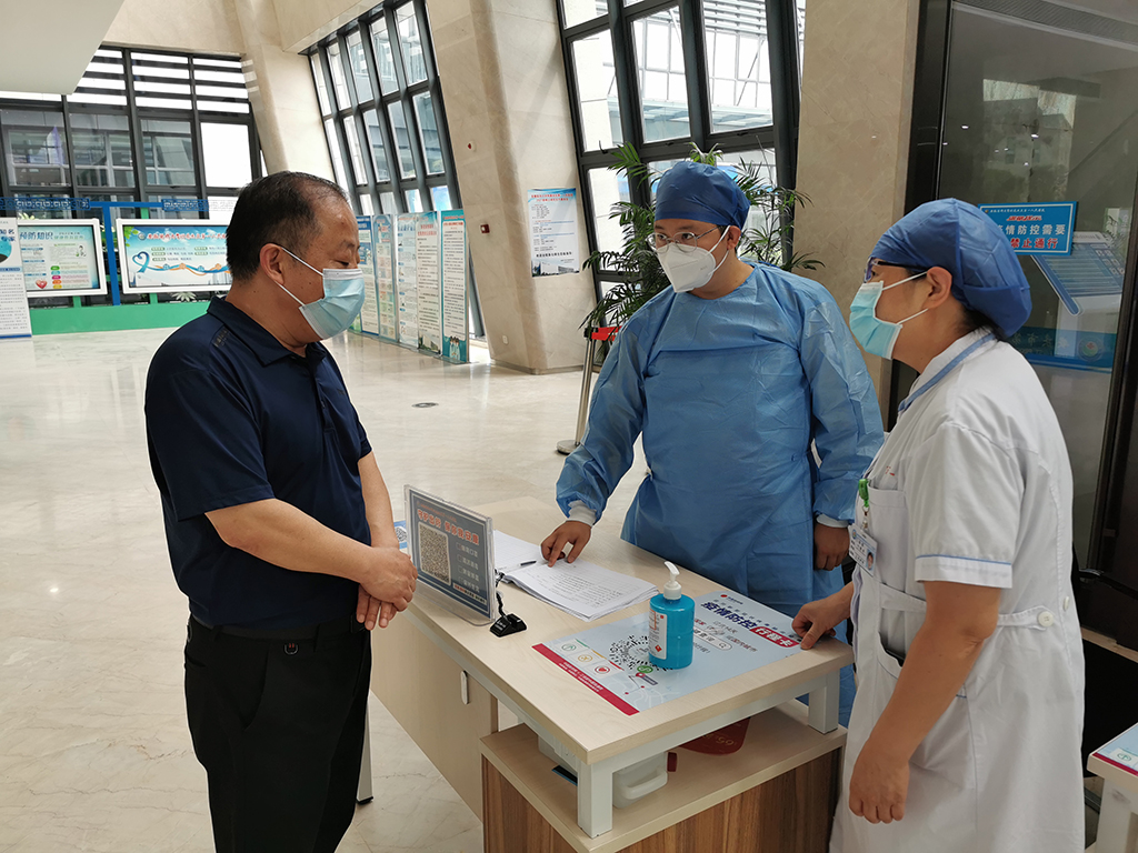 在孝肃路院区和龙山院区,院领导一行先后来到疫情防控卡口、急诊科、门诊、病房等地,向相关科室负责人详细了解防暑降温及疫情防控工作开展情况,并将慰问物资送到值守人员手中。