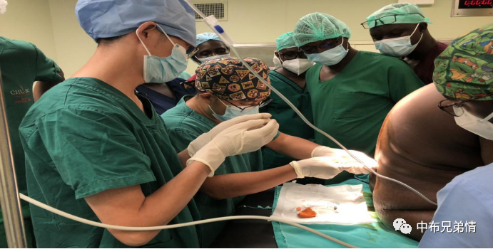 第二次挑战发生在我们观摩一例剖腹产手术的时候。该例手术的麻醉由HIEN医生带领其团队实施。该例产妇体型肥胖,在非洲同行们准备麻醉穿刺的时候,我就在心里评估了一下,此例椎管内麻醉穿刺难度较大。开始进行麻醉穿刺的是一个低年资医生,低年资医生穿刺了多次未能成功。HIEN医生手下的高年资医师接手穿刺,穿刺也不顺利,HIEN医生多次帮忙调整体位,该医生也未能成功。最后HIEN医生亲自带手套穿刺,尝试了几次也不是很顺利。我看了一下时间,从麻醉开始,时间已经过去1个小时10分钟。此时HIEN医生开始急躁,产妇也开始不怎么配合了。HIEN医生望向我们,“Monsieur,voulez-vous essayer”(先生,你们愿意尝试一下吗?)。我和队友徐四七主任交流了一下:“我们肯定要上”,“肯定的”。然后我们开始准备接手麻醉工作,在洗手消毒的时候,我思考了我们所遇到的困难:中国医生不适应坐位穿刺,麻醉穿刺针跟国内不一样会影响我们穿刺手感。穿刺前,我把麻醉穿刺要点快速的在脑中过了一遍。经过仔细定位,选好穿刺位置后开始操作,缓慢进针,轻微的落空感从手上感觉到了,拔出针芯,脑脊液缓缓流出。“C’est bon”,几个声音从背后传来。我长呼了一口气,穿刺成功了。手术后HIEN医生问了我们很多问题:你们工作多久了?擅长的领域是什么?你是怎么穿刺成功的?很显然中国医生给她留下了深刻的印象。