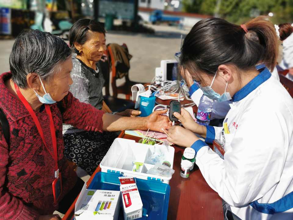 一位八十三岁高龄的老奶奶拄着拐杖蹒跚走过来,医护人员赶紧上前搀扶,老奶奶说:“太感谢你们啦,村里通知说你们要来这里为我们老年人免费看病,我一大早就出门了,家里子女都不在家,平时上趟医院很不容易,这次我可不能错过了这难得机会......”