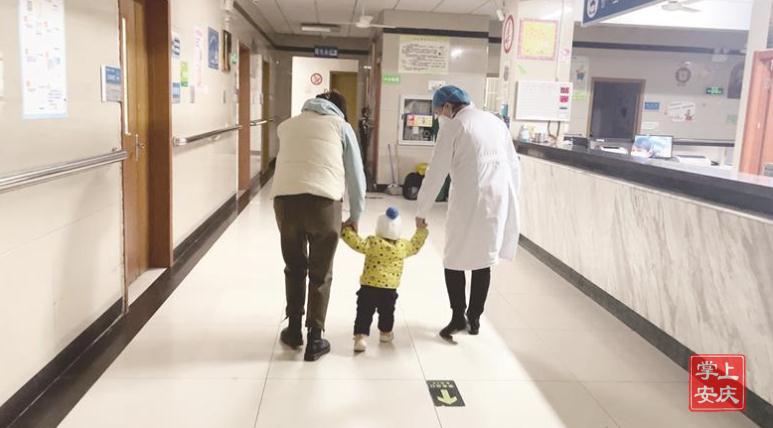 20时,儿科的走廊传来了孩子的嘻戏声,陈梅俐走出办公室,叮嘱正在做游戏的孩子们注意安全。这时,余女士抱着她的孩子走出病房,看“哥哥”们做游戏,这孩子因肺炎住院,今天退烧后,精神好了许多,被母亲从怀里放下的孩子,看见陈梅俐,刚刚蹒跚学步的他,慢慢向陈梅俐走来,陈梅俐走到孩子身边,弯下腰,和余女士一起牵着孩子一步步在走廊上行走着。