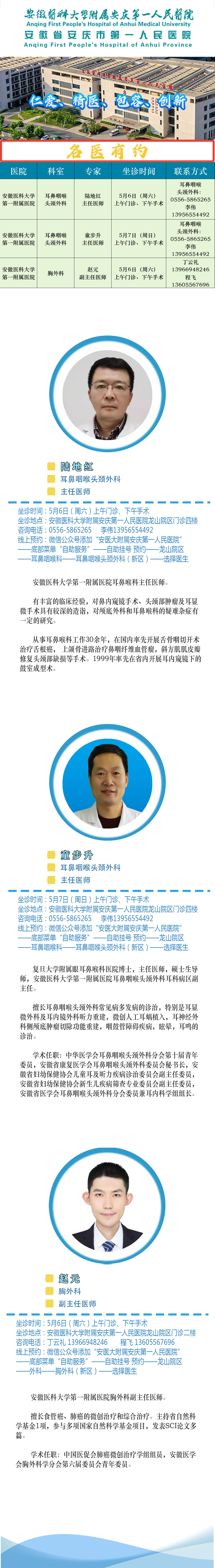 【名医有约】安医大附属安庆第一人民医院专家诊讯