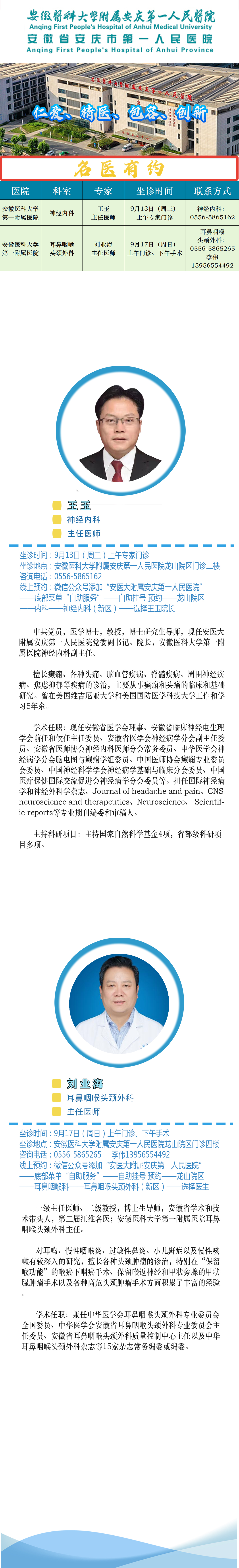 【名医有约】安医大附属安庆第一人民医院专家诊讯