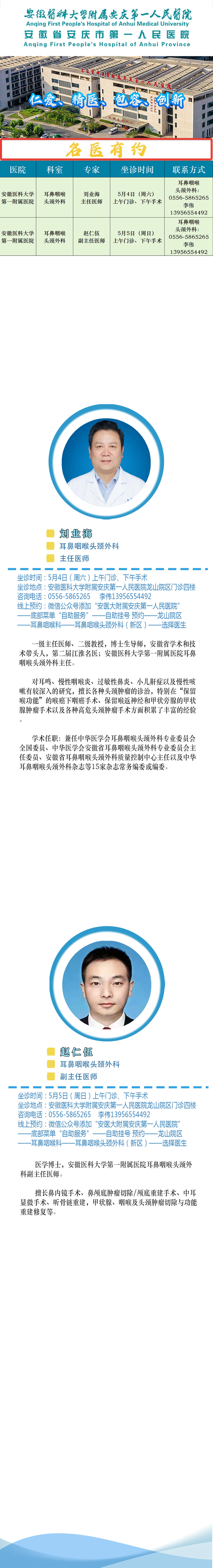 【名医有约】安医大附属安庆第一人民医院专家诊讯